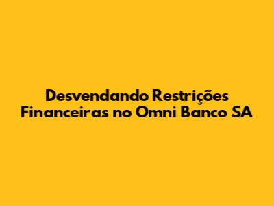 E aí, galera! Beleza? Hoje a gente vai mergulhar num assunto que pode dar um friozinho na barriga, mas que é super importante pra manter a saúde financeira em dia: as restrições financeiras no Omni Banco SA. Cara, ninguém gosta de ter o nome sujo ou de enfrentar dificuldades para conseguir crédito, né? Pois é, e entender o que causa essas restrições e como lidar com elas é o primeiro passo pra colocar tudo nos eixos.